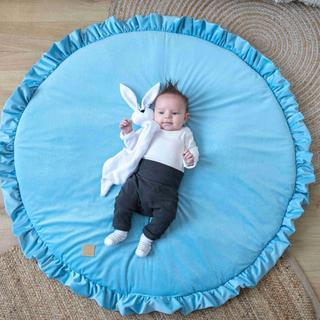 Okrúhla hracia podložka s volánmi modrý velvet, priemer 100cm