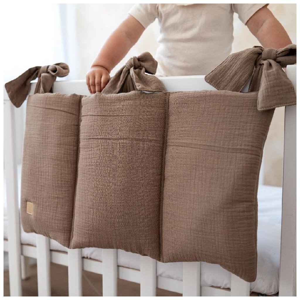 Organizér oceníte na maličkosti ako je cumlík alebo krém, plienku alebo lahvičku, neskôr aj na pyžamko a spinkáčika. Navyše dokonale zútulní celú postieľku a tá bude pôsobiť ucelene. Na organizéri sú našité tri bavlnené šnúrky, vďaka ktorým priviažete organizér na každý typ malej i veľkej postieľky.