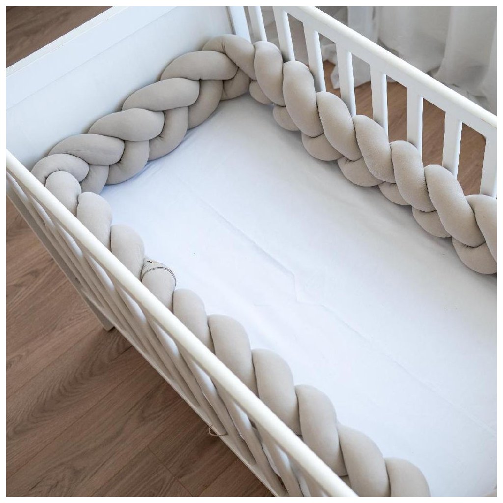 Pletený mantinel vytvorí v postieľke, kolíske či košíku mäkké hranice a zaistí tepelný komfort v ktoromkoľvek ročnom období. Copový mantinel vytvorí útulný peliešok, ktorý chrání hlavičku aj telíčko pred nárazom o tvrdé bočnice počas spánku. Vaše bábätko tak môže v postieľke po náročnom dni pokojne odpočívať, ale aj „cestovať“.