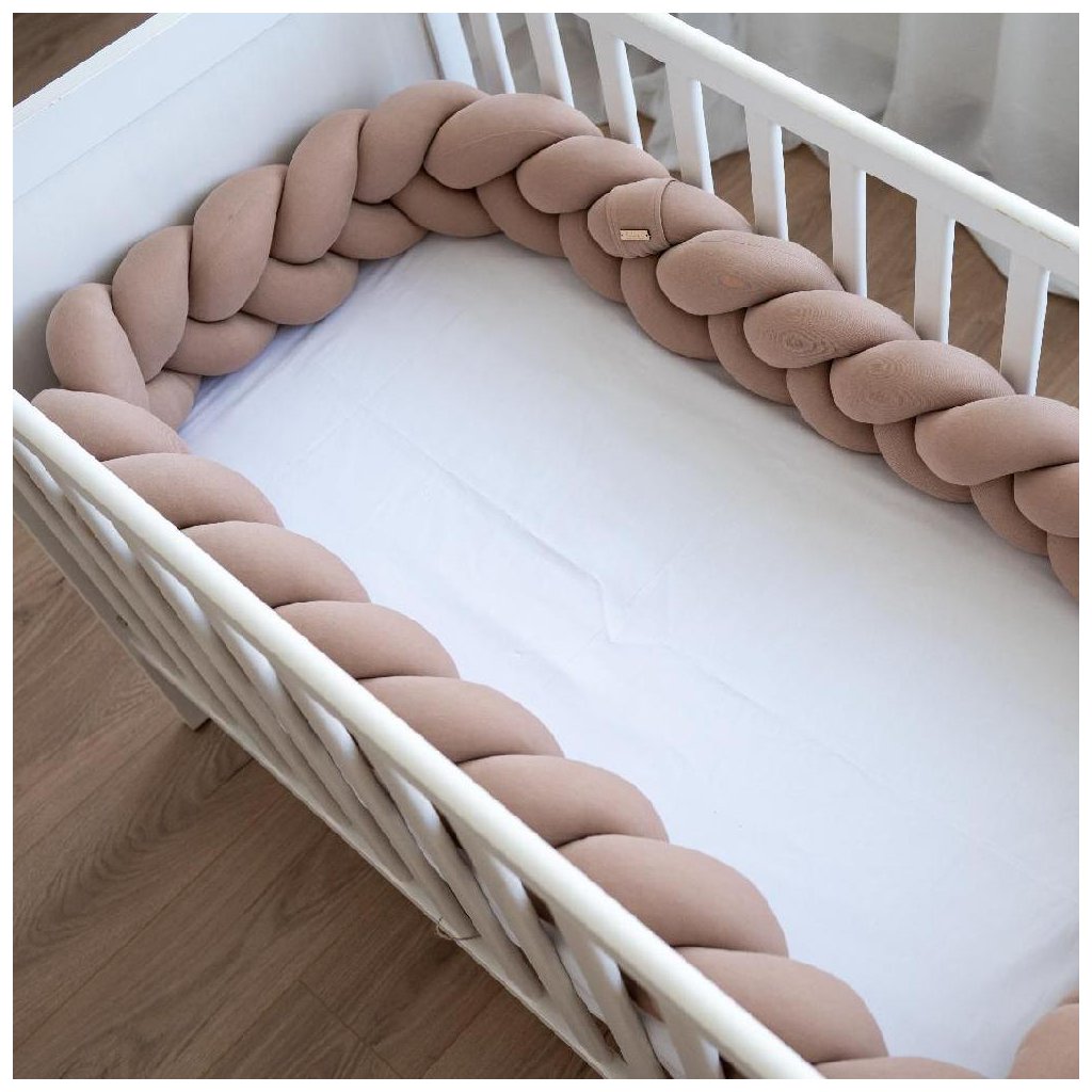 Pletený mantinel vo farbe kapučíno vytvorí v postieľke, kolíske či košíku mäkké hranice a zaistí tepelný komfort v ktoromkoľvek ročnom období. Copový mantinel vytvorí útulný peliešok, ktorý chrání hlavičku aj telíčko pred nárazom o tvrdé bočnice počas spánku. Vaše bábätko tak môže v postieľke po náročnom dni pokojne odpočívať, ale aj „cestovať“.