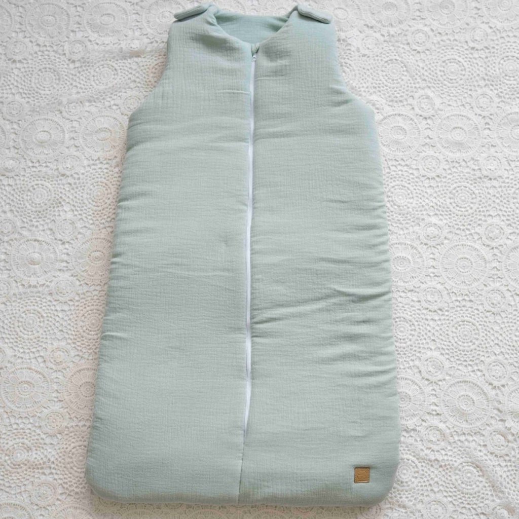 Rastúci spací vak na ramienka mätový zelený mušelín