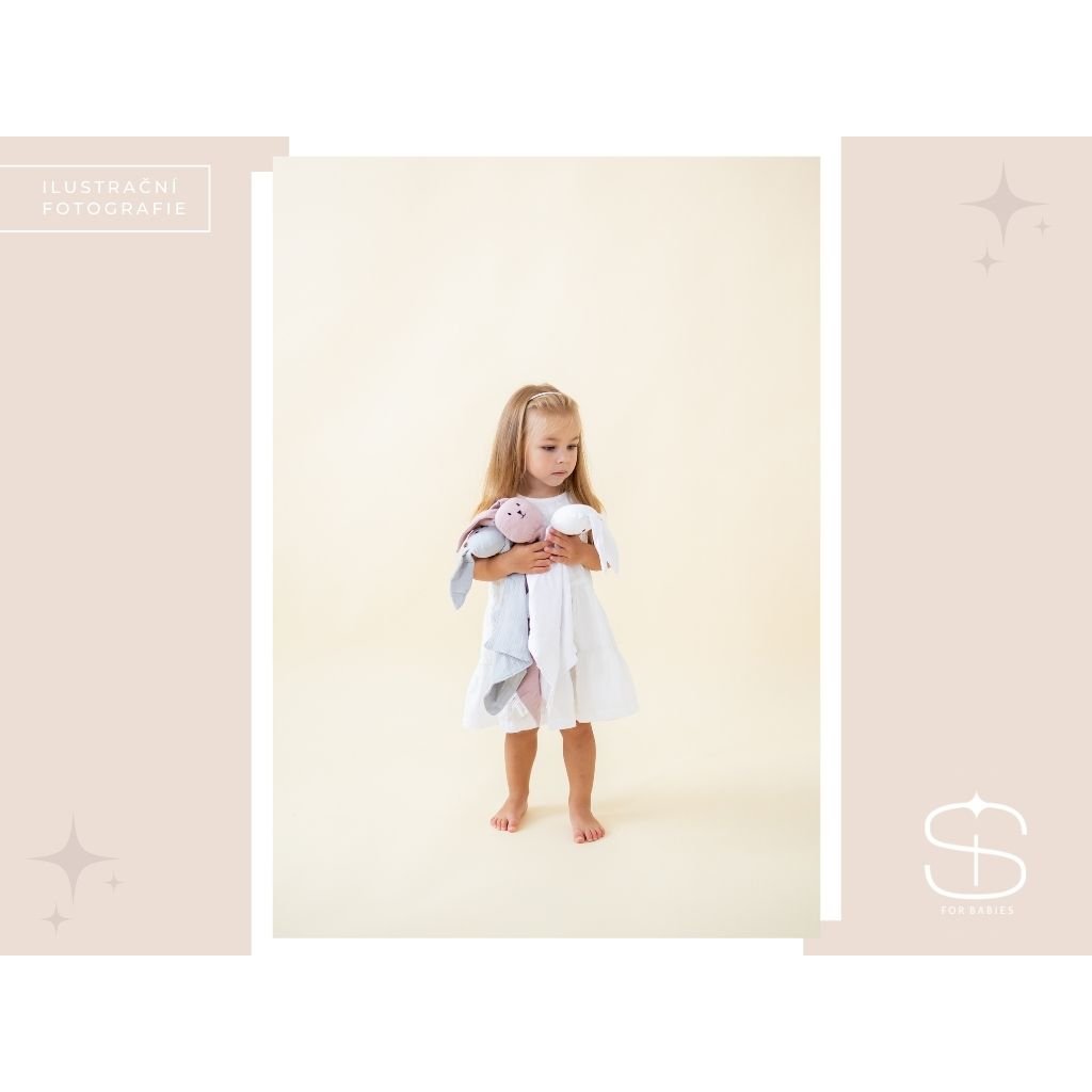 Každé bábätko potrebuje svojho vlastného hebučkého kamaráta. Tento, v podobe zajačika a v prevedení, ktoré si sami zvolíte, bude tým úplne prvým kamarátom do nepohody, ktorý bude vaše dieťatko sprevádzať na každom kroku. Pri cestovaní, pri prvých pokusech o uchopenie hračky, pri prvom žvatlaní, ale predovštkým pri zaspávaní. Vďaka nemu se bude bábätko cítiť bezpečne a príjemne a spinkáčik se stane nepostrádateľnou a zároveň veľmi skladnou súčásťou vašej výbavičky. A to na celé mesiace až roky.
