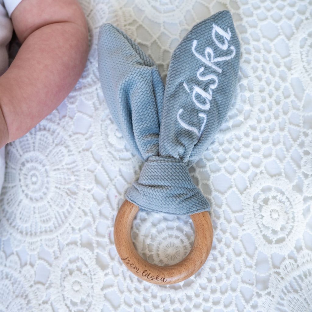 Drevené hryzadlo je do hladka vybrúsené, bezpečné a poslúži ako záchrana pri prvých zúbkoch a bolesti dasien. Hryzadlo je ušité s šušťavým papierom vo vnútri látky, samotná látka velvet je na dotyk veľmi príjemná a hebká, Garantujeme, že žiadne bábätko nepustí túto hračku z ruky :-)