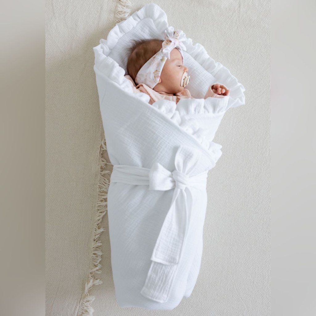 Zavinovačka/deka/podložka s volánom biely mušelín