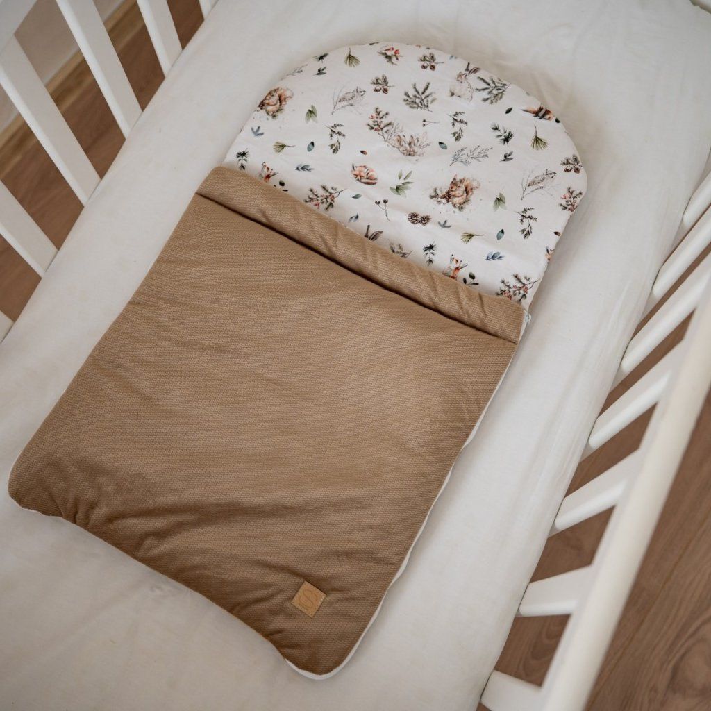 Spací pytel se zipy na bocích kapučíno velvet Lesní zvířátka